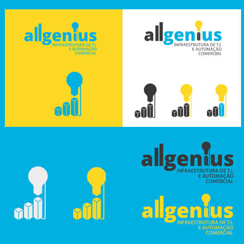 fazendo referência à servidores. E ligados a eles uma lâmpada que, por sua vez, representa a expertise (qualidade, competência) da empresa.